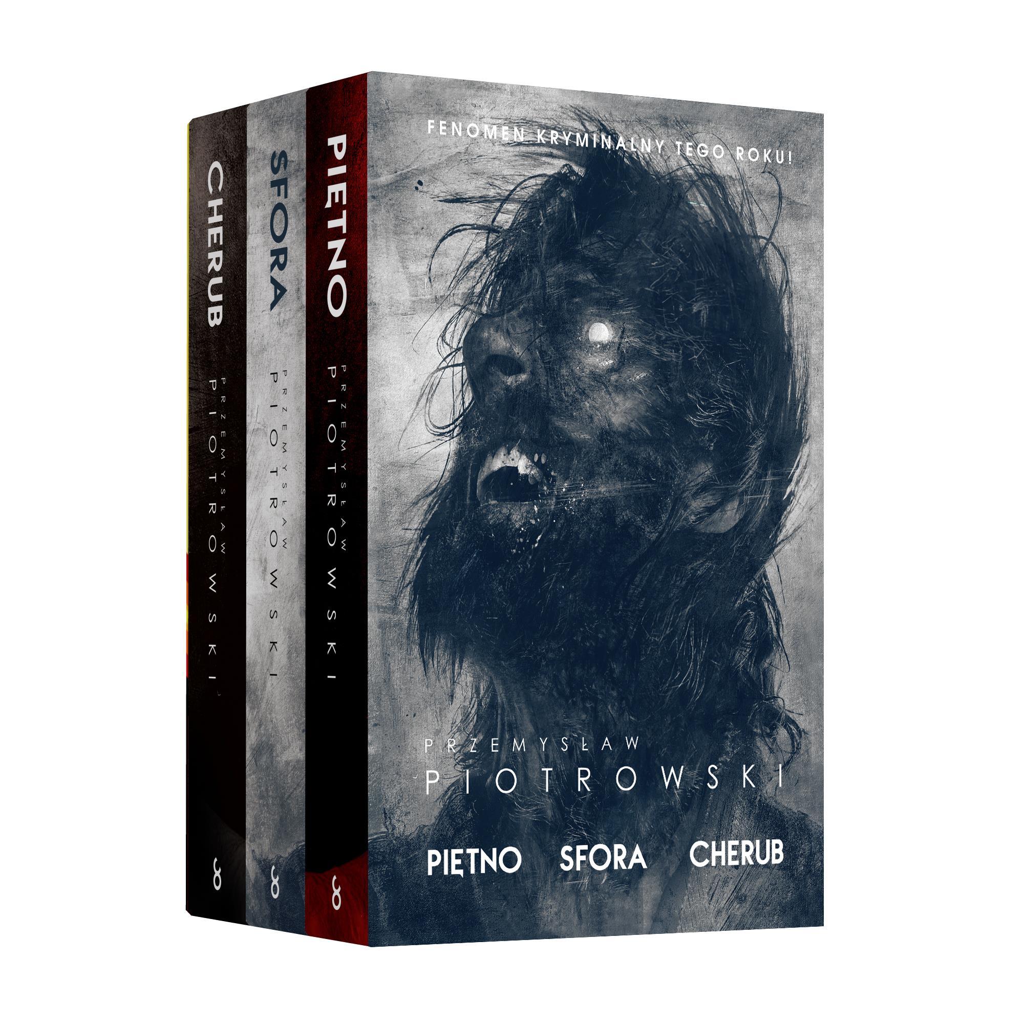 MROCZNA I BRUTALNA TRYLOGIA KRYMINALNA "PIĘTNO" Igor Brudny to twardy, warszawski glina, który woli nie wracać do swojej przeszłości. Tym razem może jednak nie mieć innego wyjścia. Zielona Góra. Mężczyzna bliźniaczo podobny do Brudnego jest poszukiwany w sprawie wyjątkowo brutalnego morderstwa. Komisarz musi wrócić do rodzinnego miasta, by oczyścić się z podejrzeń i rozwikłać tajemnicę swojego pochodzenia. Na miejscu działa już zespół śledczych dowodzony przez inspektora Romualda Czarneckiego. Brutalność mordercy nie pozostawia wątpliwości – to dopiero początek. Obecność Brudnego dodatkowo komplikuje całą sprawę. Czarnecki jest przekonany, że komisarz może okazać się kluczem do złapania sprawcy. Ale czy może mu zaufać? "SFORA" Zima. W lesie nieopodal Zielonej Góry odnaleziona zostaje ręka. Wstępne oględziny wskazują, że została ona… odgryziona przez człowieka. Atmosfera niepokoju w mieście narasta. W mediach pojawiają się pogłoski o grasującym w okolicach wilkołaku. Niedługo potem śledczy trafiają na zmasakrowane zwłoki zaginionej niedawno zakonnicy – ofiara została zamordowana, a jej ciało rozszarpały wilki. Inspektor Romuald Czarnecki powołuje specjalną grupę dochodzeniowo-śledczą, w skład której wchodzą również Igor Brudny i Julia Zawadzka ze stołecznej policji. Talent i trudna przeszłość komisarza Brudnego po raz kolejny mogą okazać się nieocenione. Mimo zdecydowanych działań śledztwo komplikuje się coraz bardziej. Brudny musi ustalić, czy sprawca ma jakiś związek z sierocińcem sióstr hieronimek, w którym sam się wychowywał. Łowy dopiero się zaczynają. "CHERUB" Przeszłość upomni się o niego po raz ostatni. Zielonogórskie lato przerywa kolejna zbrodnia. Prokurator Brunon Kotelski zostaje bestialsko okaleczony i zamordowany. W tym samym czasie komisarz Igor Brudny otrzymuje pamiątkę z przeszłości. Pod nieobecność emerytowanego inspektora Romualda Czarneckiego sprawę przejmuje prokurator Arleta Winnicka. Zainscenizowane miejsce zbrodni, wybór ofiary i brak śladów nie pozostawiają żadnych wątpliwości. Morderca jest brutalny, nieprzewidywalny i świetnie panuje nad sytuacją. Bardzo szybko daje śledczym do zrozumienia, że żadne z nich nie może czuć się bezpieczne. Szykuje się najtrudniejsza sprawa w ich karierze. Brudny, zdeterminowany, by uratować przyjaciół i raz na zawsze zostawić przeszłość za sobą, podejmuje wyzwanie. Finałowy pojedynek dopiero się rozpoczyna. Przemysław Piotrowski (ur. 1982) – ukończył studia na Uniwersytecie Zielonogórskim, studiował również w Hiszpanii i USA. Były dziennikarz „Gazety Lubuskiej”, w której najpierw zajmował się tematyką sportową, potem – śledczą. Debiutował w 2015 roku thrillerem historycznym Kod Himmlera. Autor bestsellerowej serii o komisarzu Igorze Brudnym (Piętno, Sfora, Cherub, Zaraza, Bagno), która podbiła serca krytyków i czytelników. Jego powieść Zaraza została uznana za książkę roku 2021 w plebiscycie organizowanym przez lubimyczytac.pl. Poza serią o Igorze Brudnym ukazały się także powieści Krew z krwi oraz Matnia a także Prawo matki pierwsza część nowego cyklu.