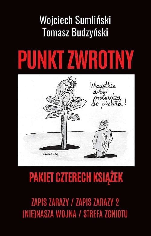 Pakiet czterech książek - „Zapis zarazy, "Zapis zarazy 2", "(Nie)nasza wojna", "Strefa zgniotu" - które połączone w całość zmieniają sposób patrzenia na nasza rzeczywistość. Kiedyś sądziliśmy, że to rzeczywistość w miarę bezpieczna, ale dziś nikt już tak nie myśli. Światowa pandemia i światowa mistyfikacja, na które nakłada się światowy kryzys i wojna na Ukrainie - zmieniły wszystko. Znaleźliśmy się w miejscu, w którym nie planowaliśmy sie znaleźć, zadając sobie szereg pytań.Co dalej z pandemią wszech czasów, która zmieniła wyobrażenie o przeszłości i co jeszcze szykują nam globaliści?Dokąd prowadzi gospodarczy krach, który niszcząc teraźniejszość, wywołuje lęk i pytania o przyszłość?Czy wojna na Ukrainie, to dogasający konflikt, czy katalizator wojny na Pacyfiku i zarzewie światowego pożaru?Czy Rosja dokona nuklearnego ataku i dlaczego amerykańscy analitycy określają Polskę „strefą zgniotu”?Pakiet czterech książek pt. "Punkt zwrotny", to oparta o solidne podstawy i twarde dane zbierane w Europie oraz za Oceanem, nieznane opinii publicznej fakty i opatrzone klauzulą tajności analizy – między innymi Agencji Bezpieczeństwa Wewnętrznego – starannie zweryfikowana, przejmująca, praca majora ABW Tomasza Budzyńskiego i dziennikarza śledczego Wojciecha Sumlińskiego.Co byś zrobił, gdybyś dowiedział się, że końcowe odliczanie do globalnego chaosu już trwa, a życie, jakie znałeś, zostało policzone na miesiące?