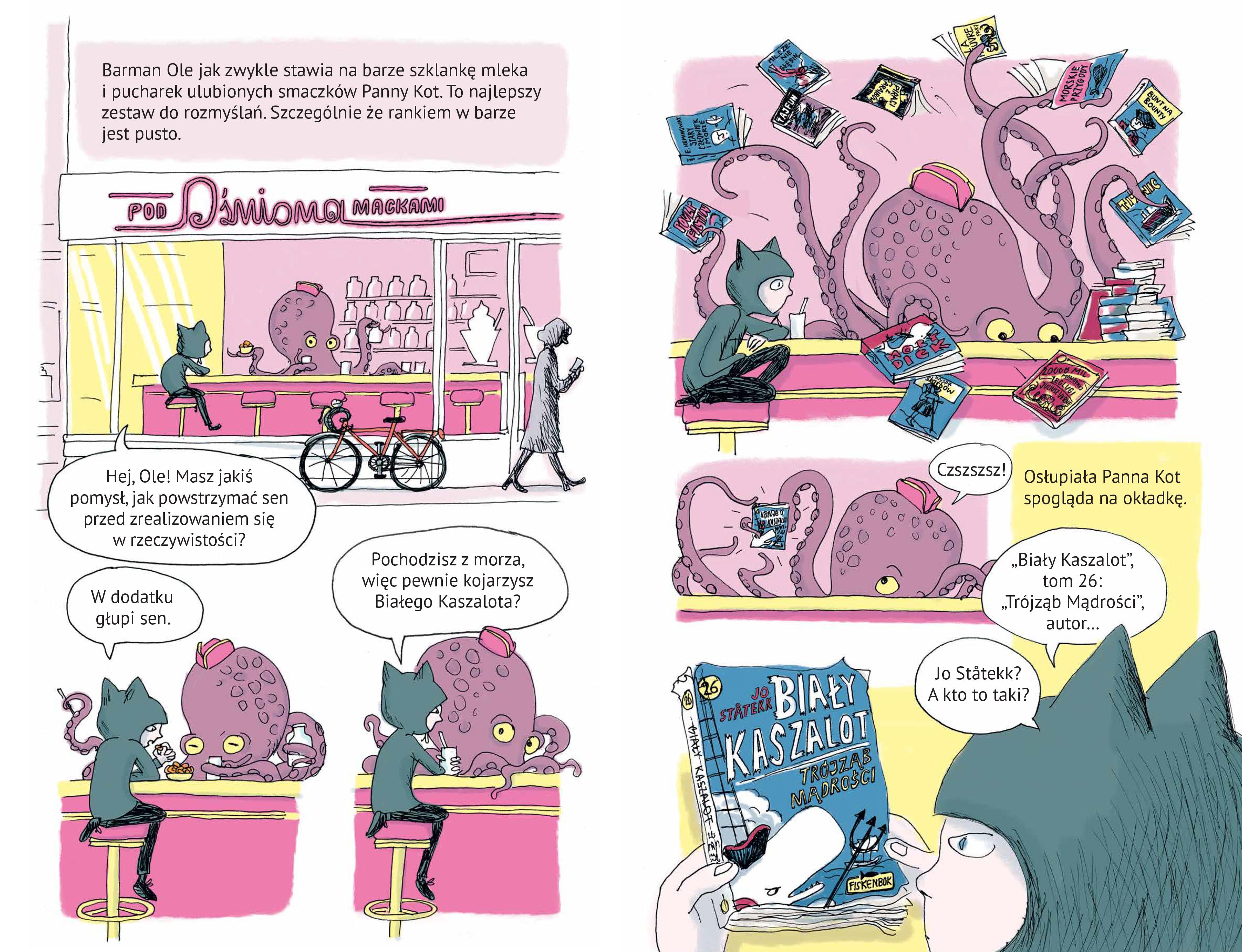 Dynamiczna forma komiksu stylizowanego na skandynawski kryminał, wyrazista kreska Joëlle Jolivet i błyskotliwe dialogi Jeana-Luca Fromentala sprawiają, że od przygód Panny Kot nie sposób się oderwać. To idealna propozycja dla dzieci rozpoczynających samodzielną przygodę z czytaniem oraz dla wszystkich, którzy lubią tajemnice, czarny humor, osobliwych bohaterów i wciągające detektywistyczne śledztwa.