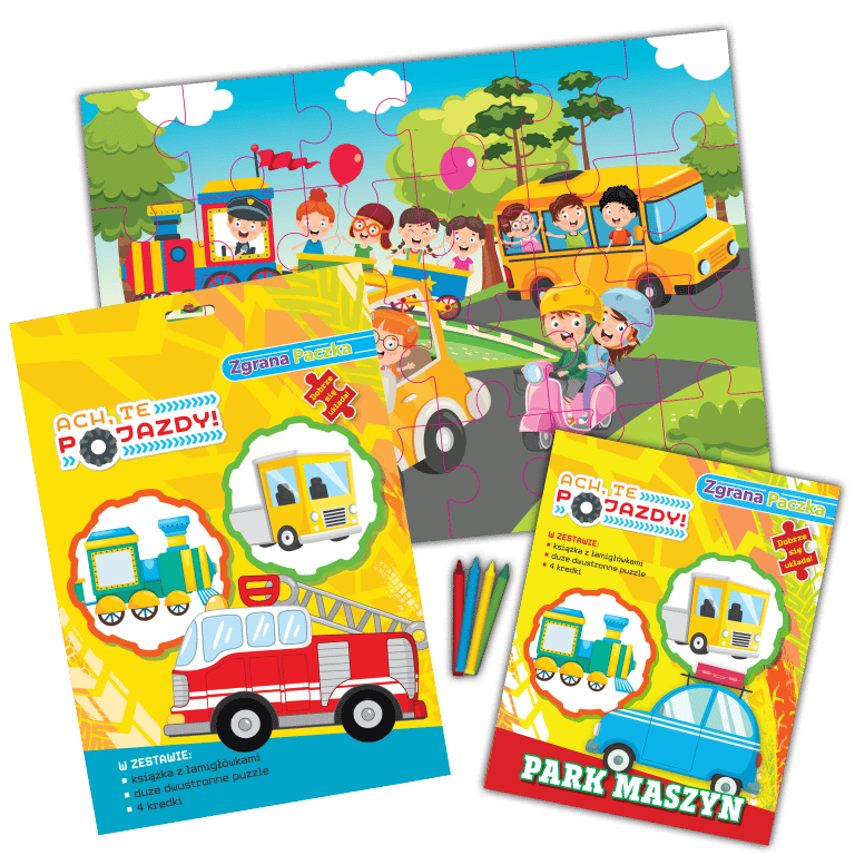 Zestaw Zgrana paczka, ruszaj na wspaniałą przygodę. Megapaczka zawiera książkę z mnóstwem zadań i łamigłówek, kolorowe kredki oraz dwustronne puzzle. Jeden z obrazków układanki można pokolorować według własnego pomysłu. Zgrana Paczka naprawdę dobrze się układa. Sprawdź to! Produkt zawiera zawieszkę na euro haczyk.
