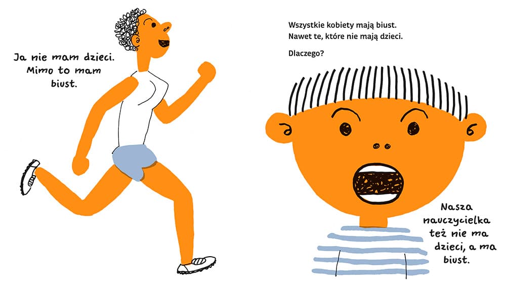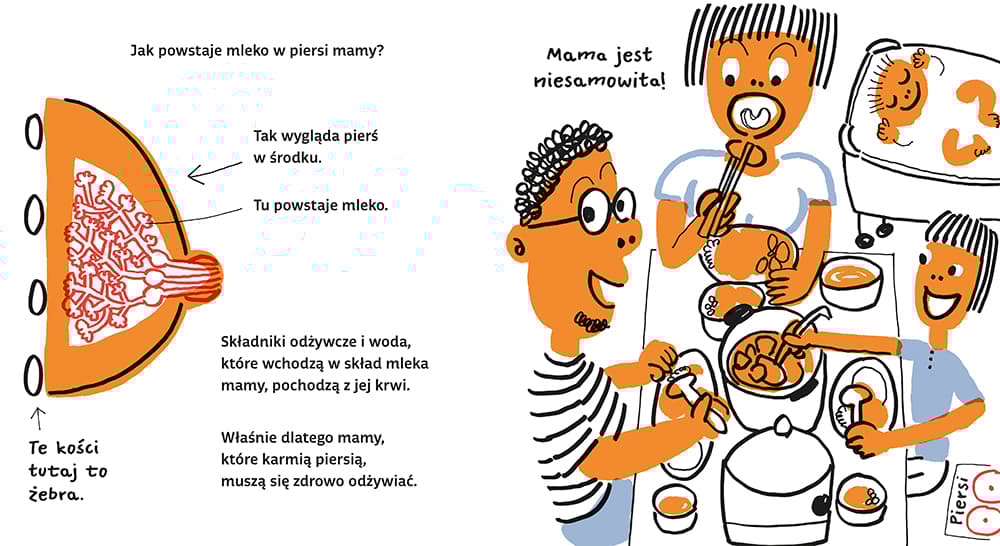 Dlaczego kobiety mają duże piersi? Po to, by mogły karmić mlekiem swoje dzieci! Nasza nauczycielka nie ma dzieci, a ma biust. Mężczyźni też mają piersi! Ale nie ma w nich mleka! „Piersi” to drugi tom serii książek o ludzkim ciele stworzona przez japońskiego autora Gen-ichiro Yagyu. Książka w zabawny i zrozumiały dla najmłodszych dzieci sposób wyjaśnia, jak działają piersi.