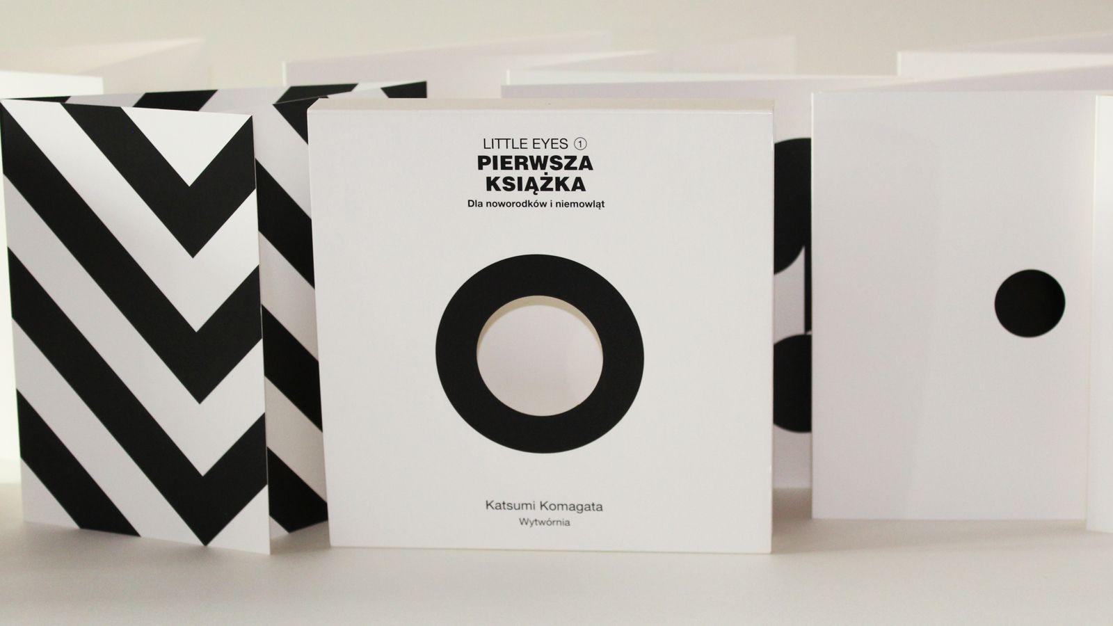 “Pierwsza książka” dla dzieci w wieku 0-5 miesięcy, to zestaw dwunastu trójdzielnych kart. Na każdej z nich są czarne, geometryczne figury na białym tle, a część z nich posiada otwory, które pozwalają na dodatkowe animacje kartą. Pokazując dziecku czyli otwierając, przekładając i zamykając poszczególne części kart, odkrywamy nowe, zaskakujące kształty. Koncentrujemy wzrok dziecka na zmieniających się obrazach, pobudzając jego wyobraźnię i ciekawość świata. Forma książki pozwala na wiele sposobów jej prezentacji i „czytania”. Książka zawiera również kartę z opisem użytkowania, wskazówkami psychologa i autora.