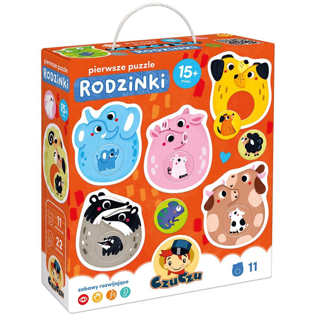 Edukacyjne układanki sprawdzą się jako pierwsze układanki już dla roczniaków. Zabawa polega na dopasowaniu kółeczek w odpowiednie miejsca. W zestawie znajdziecie 11 dwuelementowych puzzli z uroczymi, pełnymi ciepła i humoru ilustracjami, które przedstawiają maluchy i ich rodzinki. Zabawa rozwija małą motorykę i spostrzegawczość, wspiera rozwój mowy, myślenia i wyobraźnię.
