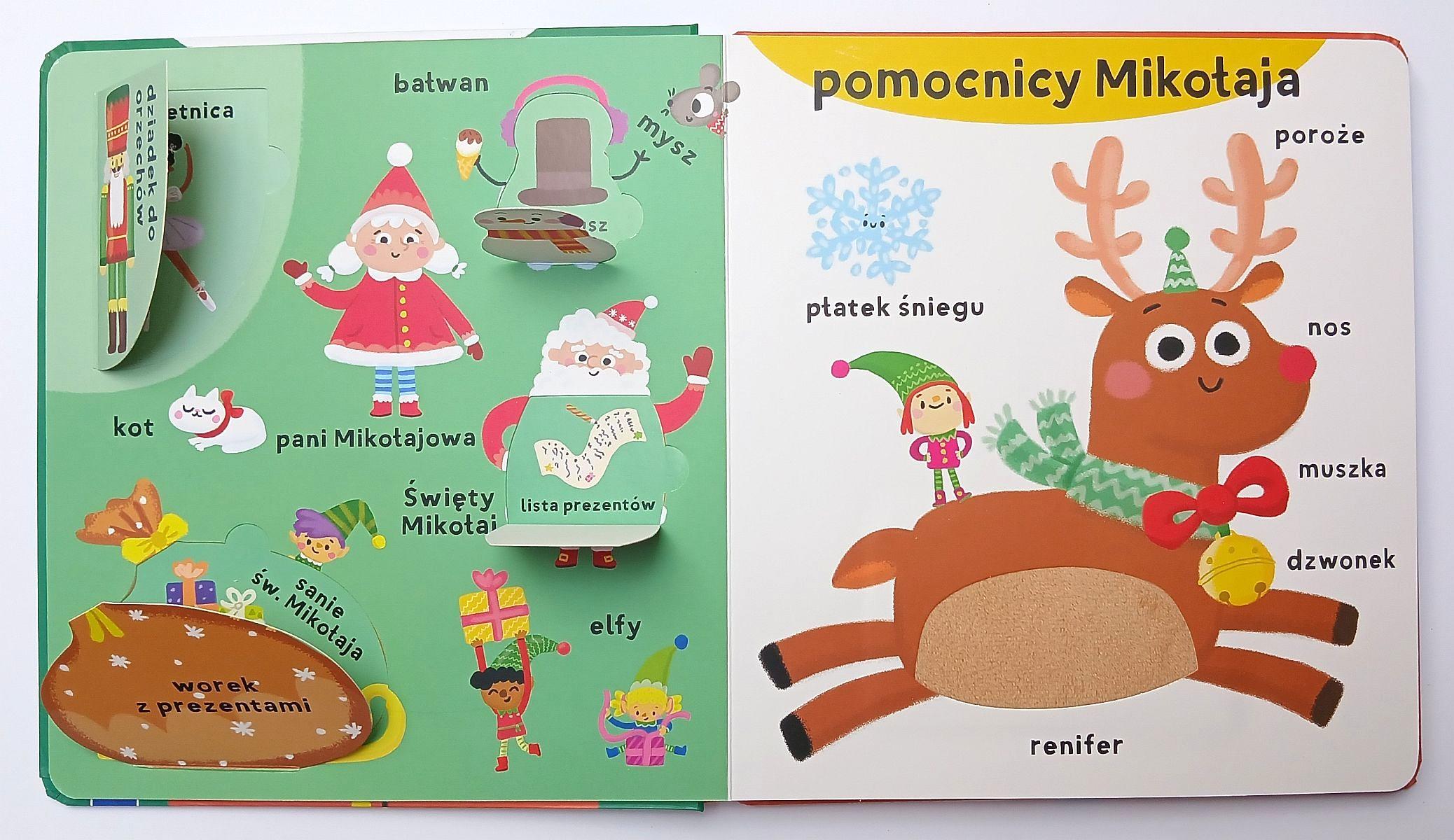 Dzięki kolorowym ilustracjom, uroczym okienkom i dużym elementom dotykowym Twój Maluszek pozna wiele nowych słówek, świetnie się przy tym bawiąc! Ponad 100 świątecznych tajemnic czeka na spotkanie z małymi rączkami dzielnych odkrywców!
