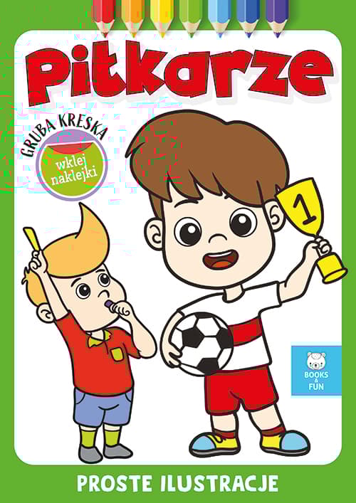 GRUBA KRESKA to kolekcja kolorowanek z prostymi rysunkami skierowana głównie do najmłodszych dzieci. Gruby obrys ułatwi kolorowanie i zapewni świetną zabawę. Nasza seria została przygotowana tak, aby ułatwić dzieciom ćwiczenie ręki. W środku czeka na nie niespodzianka – naklejki, które podpowiedzą maluchom, jakich mogą używać kolorów.