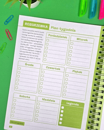 - Ułatwia planowanie tygodnia i budowanie zdrowych nawyków.