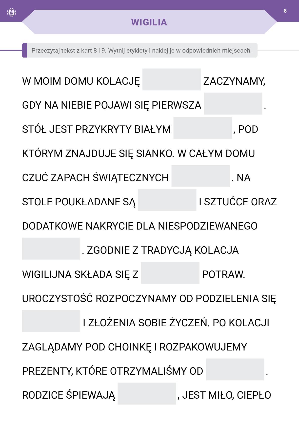 Seria kart pracy Podróż przez pory roku jest przeznaczona dla II etapu nauczania uczniów z niepełnosprawnością intelektualną w stopniu umiarkowanym. Zawiera materiał z trzech obszarów: samoobsługi, uspołecznienia oraz rozwijania i doskonalenia technik szkolnych w zakresie edukacji polonistycznej, matematycznej, przyrodniczej, technicznej i plastycznej oraz muzycznej.