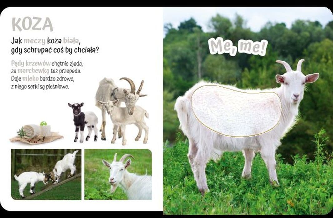 Urocza kartonowa książeczka DOTYKOWA dla MALUSZKA – na okładce i na każdej rozkładówce WKŁADKA Z FUTERKIEM. Różne FAKTURY zapewniają przyjemne WRAŻENIA SENSORYCZNE. Estetyczna i ciekawa prezentacja ZWIERZĄTEK NA WSI. ZACHWYCAJĄCE ZDJĘCIA, RYMOWANE PYTANIA i SYMPATYCZNE WIERSZYKI angażują do zabawy i poznawania świata zwierząt wiejskich. Urocza książeczka dla maluszków o ZWIERZĄTKACH NA WSI. Dzięki niej dziecko DOTKNIE zwierzą-tek, przekona się, jakie są MIĘCIUTKIE, a także pozna ich NAZWY i GŁOSY. Książka zawiera RY-MOWANE PYTANIA dotyczące głosów zwierząt oraz ciekawe WIERSZYKI, z których mały Czytelnik dowie się, nie tylko jakie nazwy noszą ZWIERZĘTA, lecz także, co one lubią JEŚĆ i jakie mają ZWY-CZAJE. Najważniejsze słowa zostały WYRÓŻNIONE kolorami. Każdy maluszek z pewnością chętnie sprawdzi, jakie w DOTYKU są KRÓWKA, KRÓLIK lub KÓZKA! Książka • zapewnia wszechstronny ROZWÓJ SENSORYCZNY • aktywizuje zmysły WZROKU, DOTYKU i SŁUCHU • pobudza WYOBRAŹNIĘ • rozwija CIEKAWOŚĆ ŚWIATA • wzbogaca SŁOWNICTWO PRZYTULKI Seria dla maluszków składa się z KARTONOWYCH książeczek z SENSORYCZNYMI WKŁADKAMI. Umożliwia małym rączkom badanie rozmaitych faktur. Przedstawia sympatyczne zwierzęta. Za-pewnia świetną zabawę i wspomaga INTEGRACJĘ SENSORYCZNĄ. Patronat: Rynek Zabawek