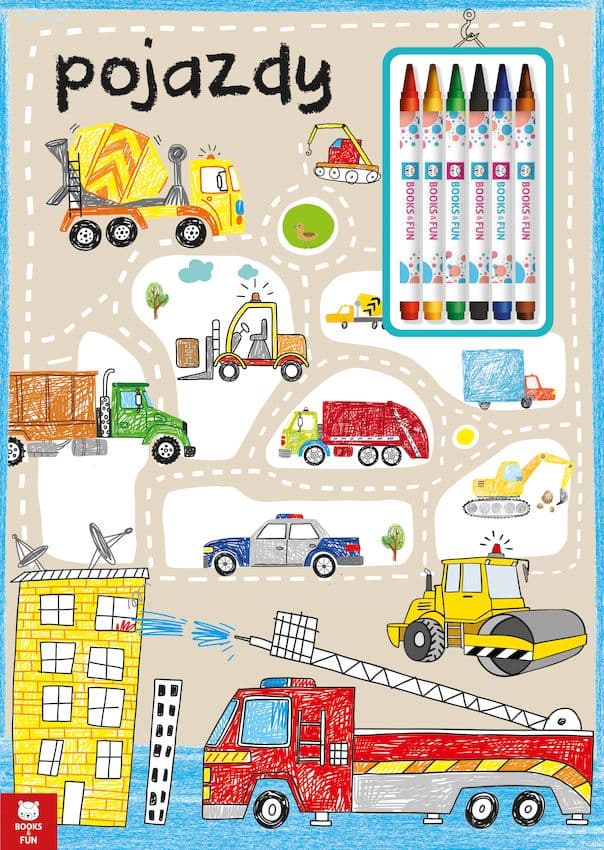 Samochody i maszyny budowlane czekają na stronach tej książeczki, abyście szybciutko je pokolorowały oraz rozwiązały zadania dla Was przygotowane.