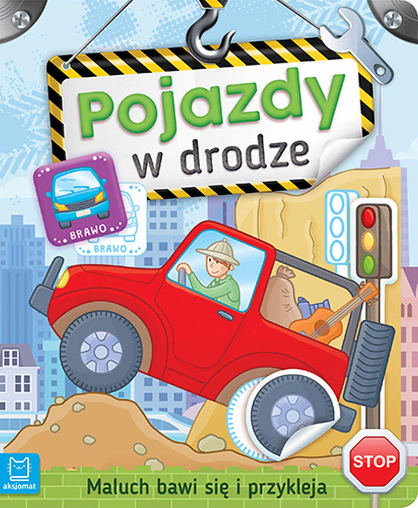 O książce Pojazdy w drodze maluch bawi się i przykleja