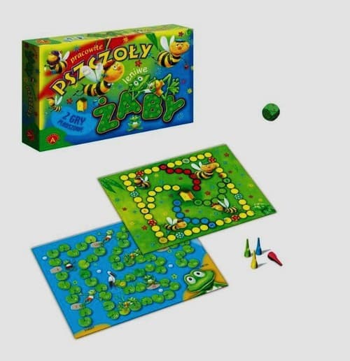 "Pracowite pszczoły" i "Leniwe żaby" to dwie gry planszowe, adresowane do najmłodszych graczy, oparte na bardzo prostych zasadach. Gracze muszą przejść przez tor na planszy. W czasie drogi pokonują wiele trudności i przeciwieństw. Zwycięzcą zostaje ten, kto pierwszy dojedzie do końca trasy. Zawartość pudełka: dwustronna plansza, 4 pionki, kostka, instrukcja. 4+ 2-4 graczy
