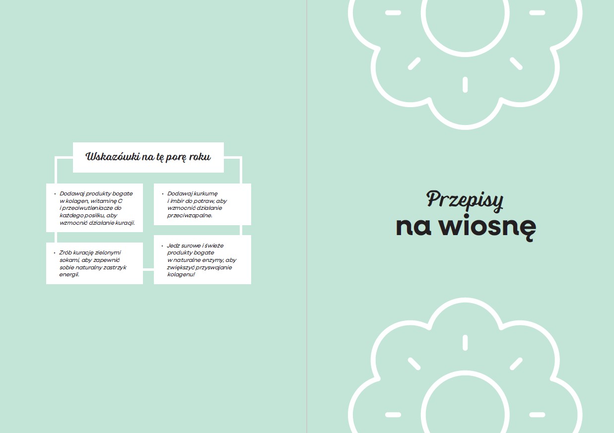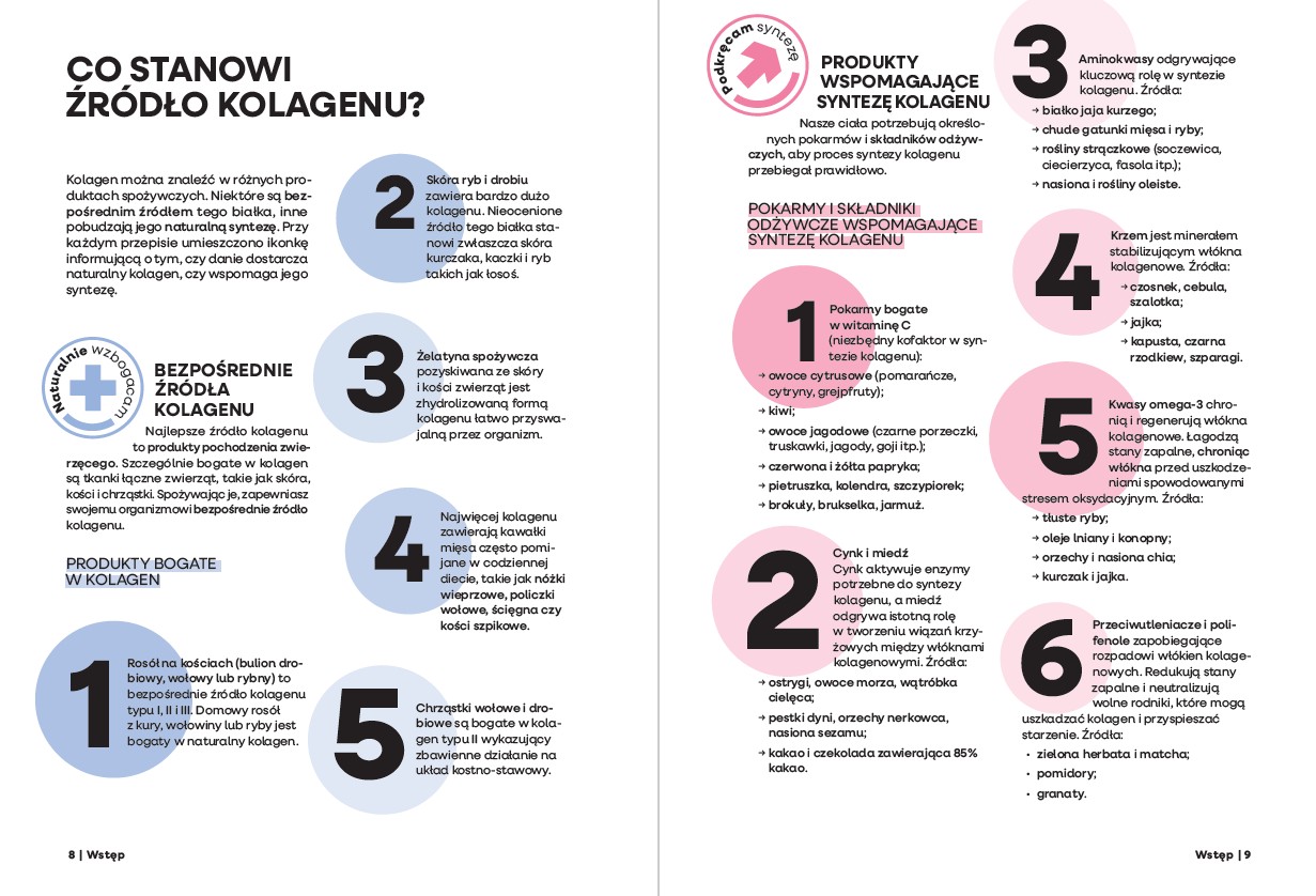 Książka zawiera 60 przepisów na dania, dzięki którym dostarczysz sobie więcej kolagenu i pobudzisz jego syntezę – od bulionów przez napoje po bardziej złożone potrawy i sezonowe minikuracje dostosowane do twoich potrzeb.