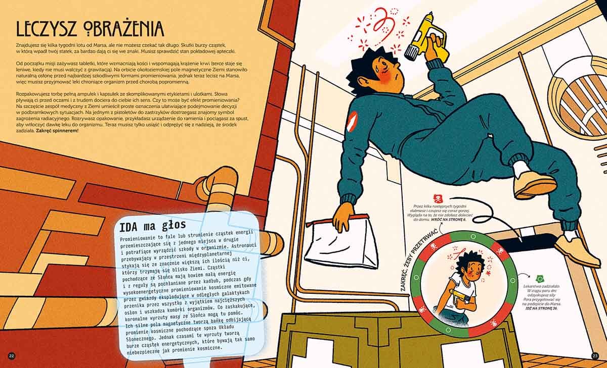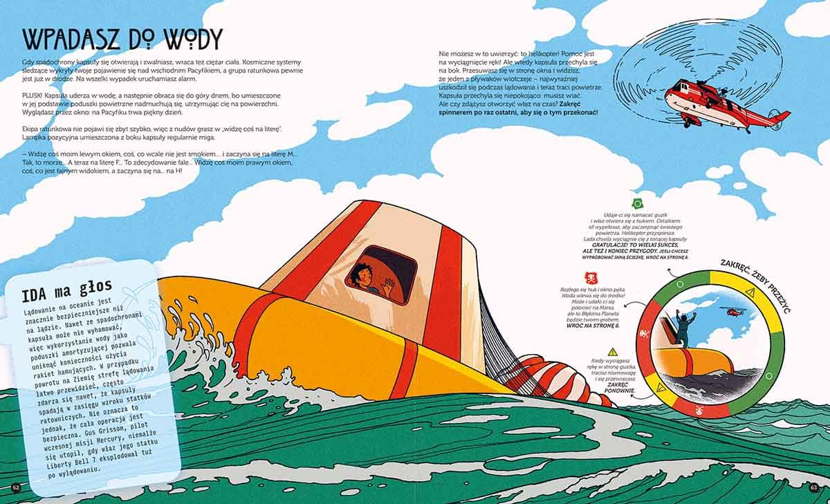 Książka „Przetrwać w kosmosie” to jednocześnie gra przygodowa – można czytać ją wiele razy, realizując różne scenariusze, jednocześnie zdobywając mnóstwo wiedzy. To także pięknie wydany atrakcyjny prezent nie tylko dla miłośników kosmosu, ale też przygód i survivalu. Wciągająca książka przygodowa, ekscytująca gra, ciekawostki naukowe i prawdziwe relacje podróżników, którzy przeżyli w ekstremalnych warunkach.