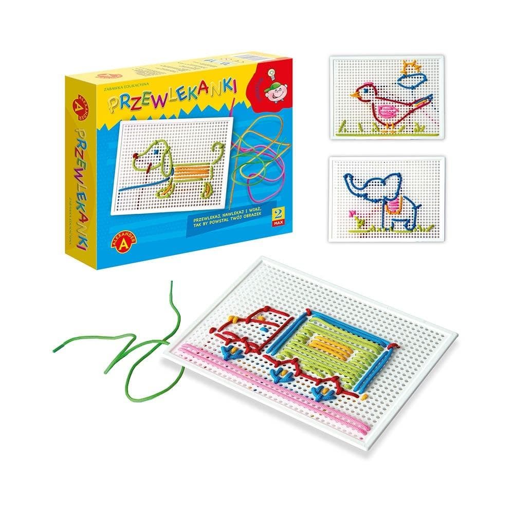 To zabawka, która polega na przewlekaniu kolorowych linek przez ażurową planszę. Linki należy przewlekać w taki sposób, by udało się stworzyć ciekawy obrazek. Przewlekanki to świetny trening cierpliwości, zręczności oraz precyzji.