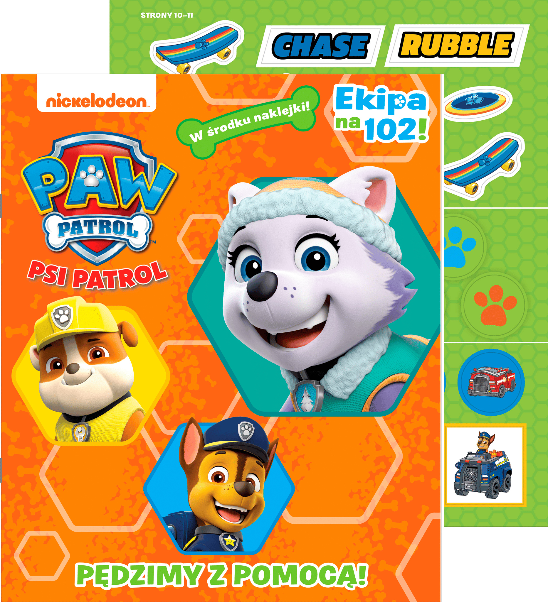 Psi patrol. Ekipa na 102! zawiera zagadki, łamigłówki oraz kolorowanki z ulubionymi bohaterami w roli głównej. W środku również kolorowe naklejki z dzielnymi pieskami! Rezolutne szczenięta Marshall, Rubble, Chase, Rocky, Zuma i Skye oraz dziesięcioletni chłopiec Ryder nigdy nie odmówią pomocy potrzebującym-pomagaj pieskom w ich bohaterskiej misji poprzez rozwiązywanie różnorodnych zadań.