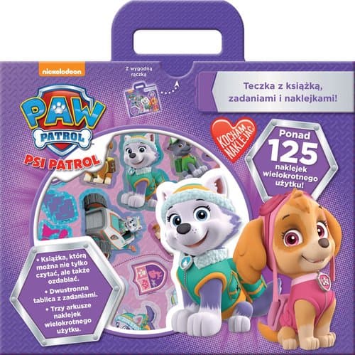 Teczka z książką, zadaniami i naklejkami. Przyłącz się do zabawy z Psim Patrolem. Wykorzystaj naklejki na dwa sposoby: najpierw uzupełnij nimi opowiadanie, a potem ozdób tablicę. Zawartość: bogato ilustrowane opowiadanie, które można uzupełnić naklejkami dwustronna tablica z zadaniami trzy arkusze naklejek wielokrotnego użytku