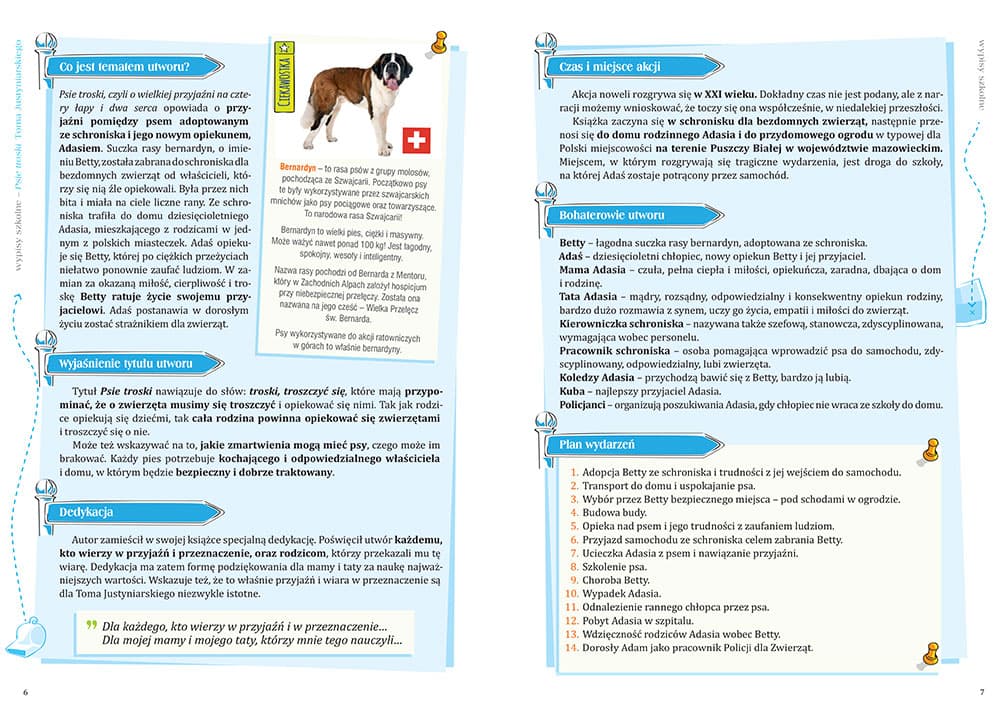 Wypisy szkolne pomogą małym czytelnikom dobrze zrozumieć powieść, zapamiętać ją i zwrócić uwagę na najważniejsze informacje. W książeczce znajdują się: