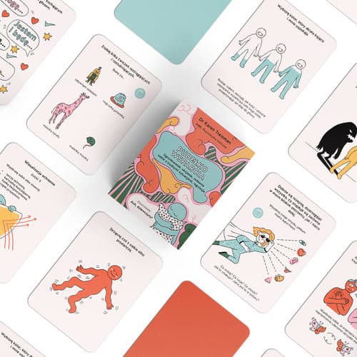 Stres, obniżony nastrój, rozchwiane emocje, lęk, trauma, problemy z zasypianiem? Trudne sprawy mogą zawężać okno tolerancji emocjonalnej. Pudełko Wsparcia nie rozwiąże wszystkich problemów, ale poszerzy okno tolerancji, dzięki czemu skutecznie stawisz im czoła. Człowiek składa się z myśli i emocje, ciała i duszy. Karty terapeutyczne zostało zaprojektowane tak, aby oddziaływać na różne sfery funkcjonowania człowieka. Autorka wykorzystuje sprawdzone techniki terapeutyczne: poznawcze, sensoryczne, samoopiekuńcze, wizualizacje, aktywacje, uziemianie, ćwiczenia fizyczne i działania kreatywne. Pudełko zawiera 70 kart oraz broszurę wyjaśniającą. Oferuje radosny i bezpieczny sposób na eksplorację uczuć oraz tworzenie skutecznych strategii radzenia sobie, bez naruszania granic osobistych. Broszura nie zawiera konkretnych zasad gry, co otwiera przed użytkownikami wiele możliwości. Karty terapeutyczne mogą mieć praktyczne zastosowanie w codziennym życiu. Dla każdej emocji, którą odczuwamy, można stworzyć wielopoziomowy plan radzenia sobie. Możne je również wykorzystać w grupie i rodzinie, wplatając w powszechnie znane zabawy, takie jak poszukiwanie skarbów czy kalambury. Techniki zostały oparte na aktualnej wiedzy o psychologii i psychoterapii. Produkt został opracowany przez dr Karen Treisman, specjalistkę psychologii klinicznej, autorkę książek na receptę NHS, niektóre zostały przetłumaczone na język polski. Działania Treisman zostało uhonorowane Orderem Imperium Brytyjskiego. O nietriggerujący dizajn i przeżycia estetyczne zadbały rysowniczki Ach, Dziewczyny.