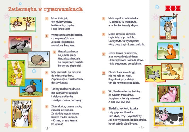Bogato ilustrowany zbiór rymowanych wierszyków, wyliczanek i krótkich piosenek dla dzieci, które towarzyszą nam od najmłodszych lat. Przekazywane z pokolenia na pokolenie stanowią niezapomniany element z dzieciństwa – uczymy się ich jako dzieci, pamiętamy jako dorośli.