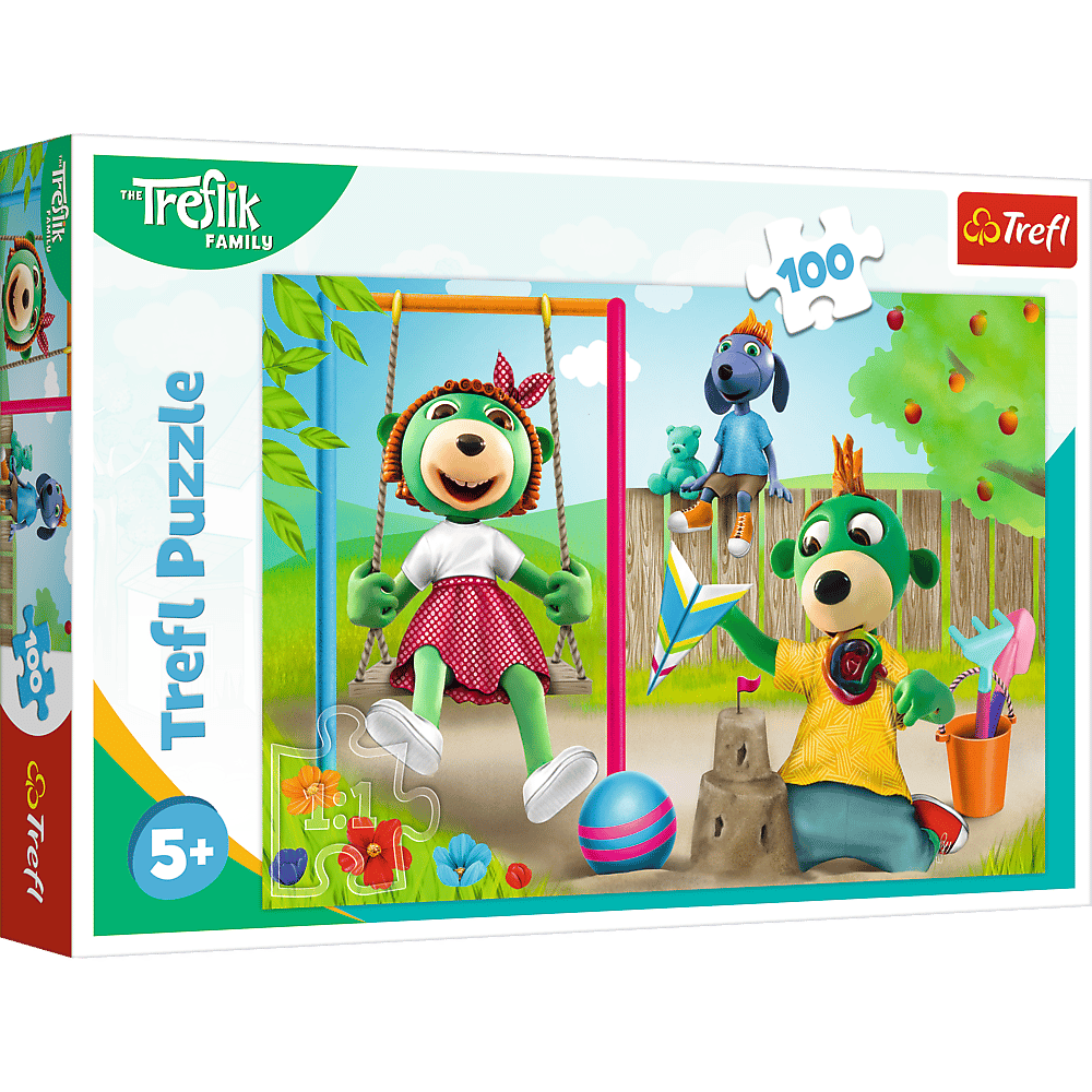 Zabawne Trefliki to puzzle składające się z 100 elementów, zaprojektowane specjalnie z myślą o małych fanach Rodziny Treflików.
