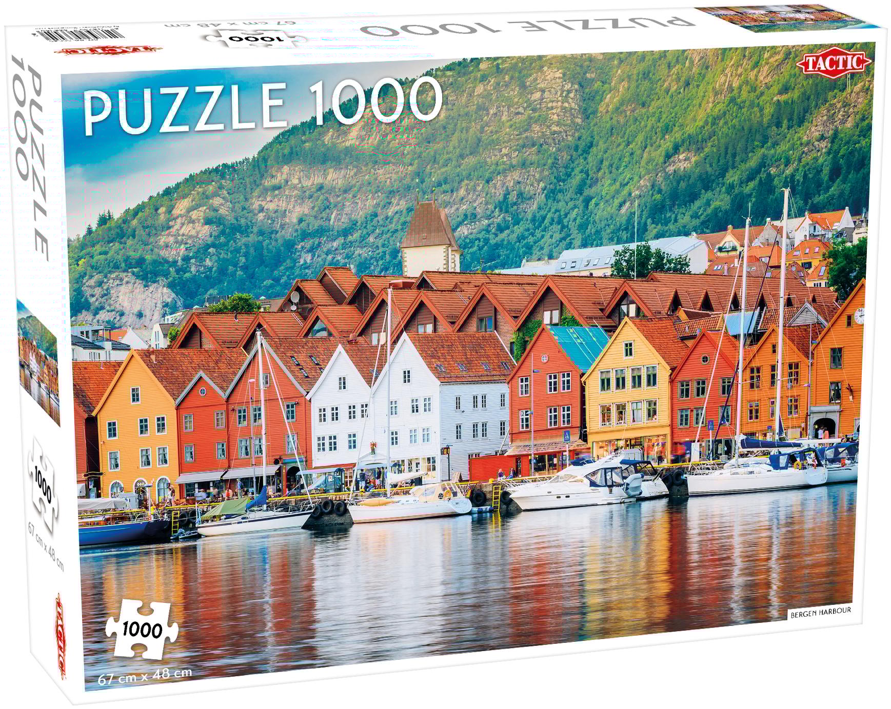 Szczegółowe informacje na temat gry Puzzle 1000 Around the World Northern Stars Bergen Harbour