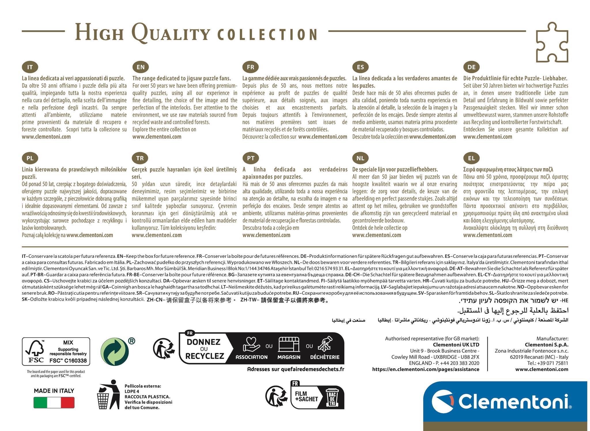 Gruba tektura puzzlowa i specjalna technologia druku zapewniają produkt wysokiej klasy. Wymiar układanki 70 x 50 cm