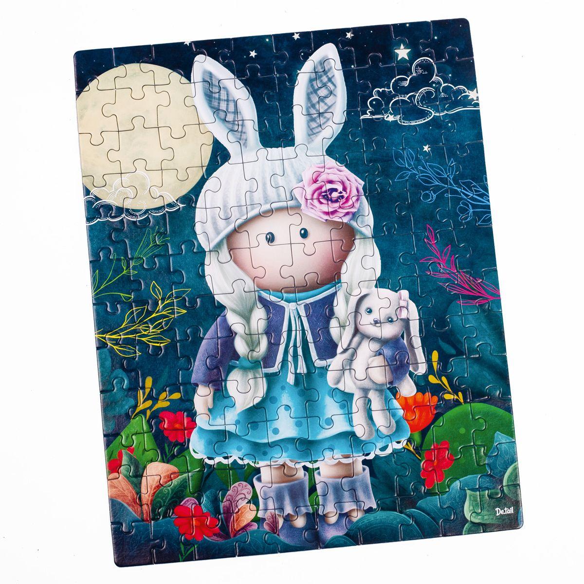 Magiczne puzzle przedstawiające uroczą lalkę z króliczkiem stworzone zostały specjalnie z myślą o małych miłośnikach układanek.