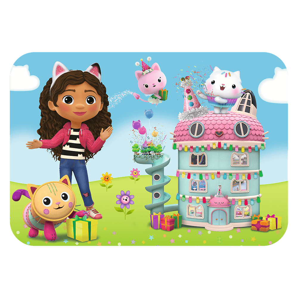 Puzzle Wesoła Gabby i przyjaciele przeniosą najmłodszych do bajki Koci Domek Gabi.