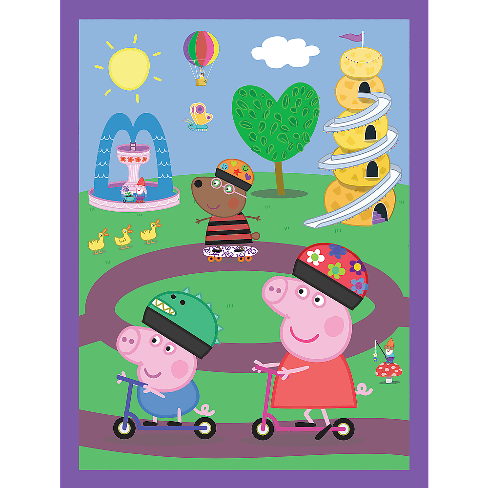 Puzzle 2w1 + memos Radosne chwile Świnka Peppa Trefl. Puzzle 2w1 + memos składają się z 2 niezależnych układanek oraz gry memo z 24 kaflami. Puzzle są idealnie dopasowane do wieku dziecka.
