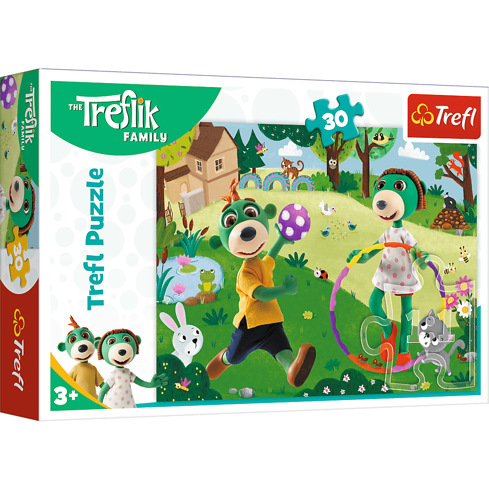 Puzzle Aktywny dzień składające się z 30 elementów, zaprojektowaną z myślą o wszystkich fanach i fankach serialu animowanego Rodzina treflików.