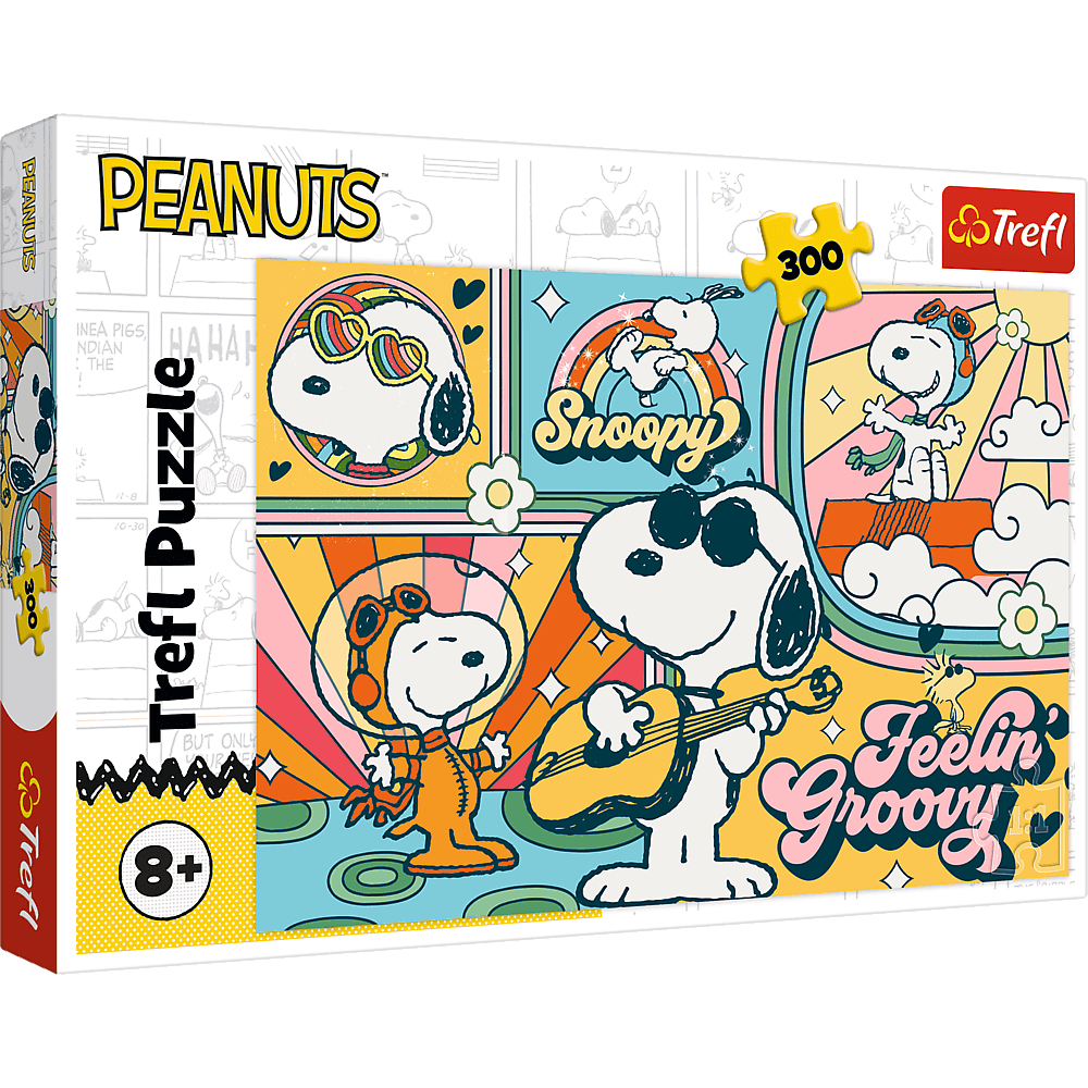 Zabawny świat Fistaszków to puzzle składające się z 300 elementów przedstawiające kolorowy, retro‑stylizowany świat z postacią Snoopy’ego ukazaną w kilku zabawnych, pozytywnych scenkach. Po ułożeniu układanki powstanie obrazek o wymiarach 600x400 mm.