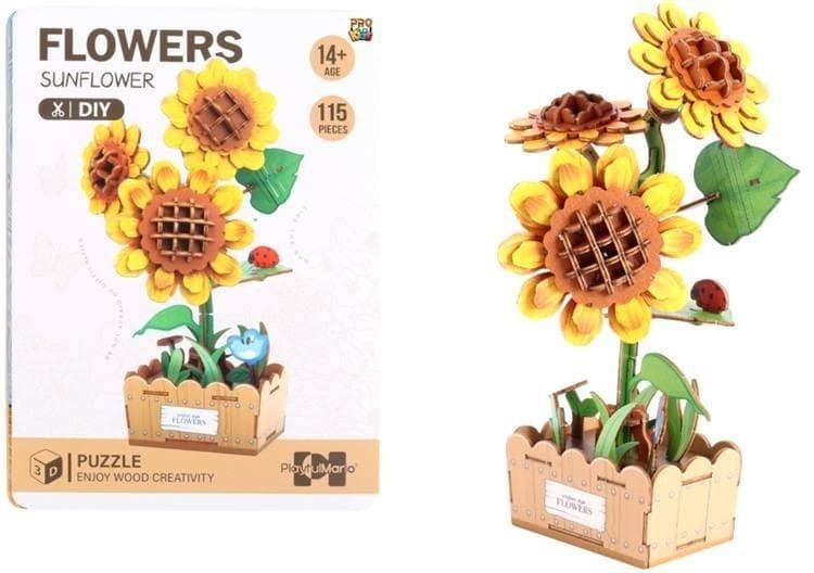 Puzzle 3D drewniane kwiaty słonecznik Gra
