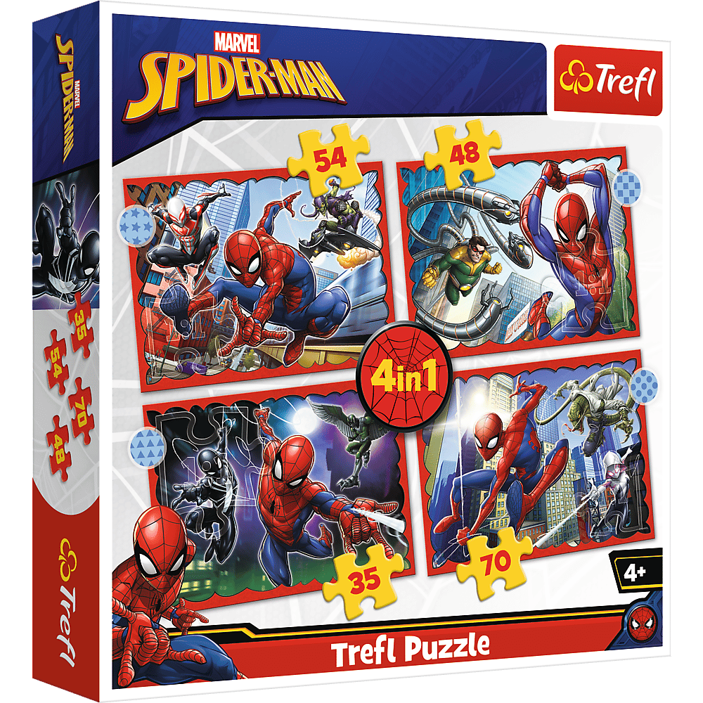 Puzzle 4w1 (35,48,54,70) Bohaterski SpiderMan 34384 Gra