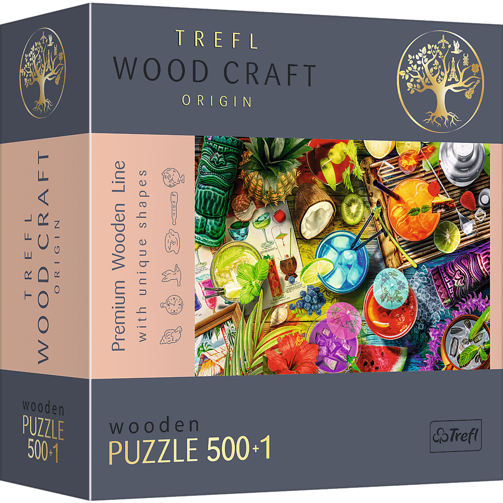 Szczegółowe informacje na temat gry Puzzle 500+1 drewniane Kolorowe koktajle 20154