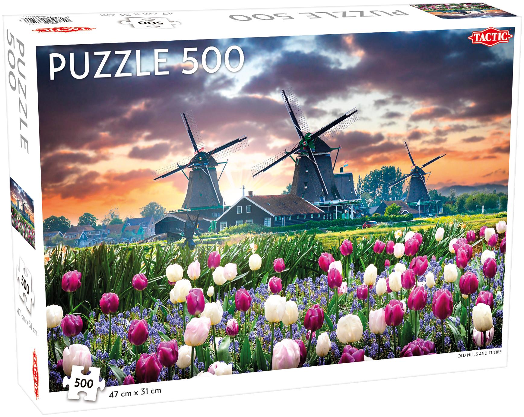 Puzzle 500 Landscape Old Mills and Tulips Gra