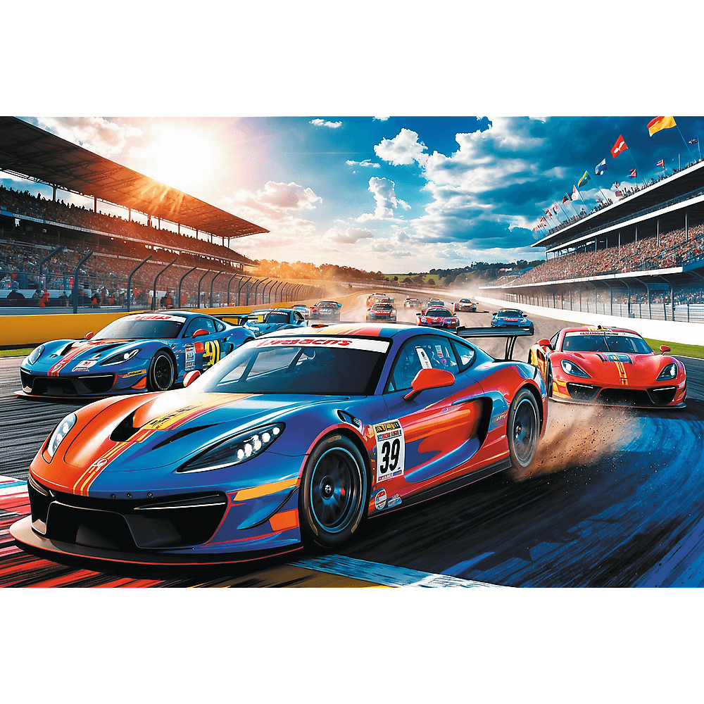Po ułożeniu układanki powstanie obrazek o wymiarach 410x275 mm, przedstawiający samochód wyścigowy na torze.