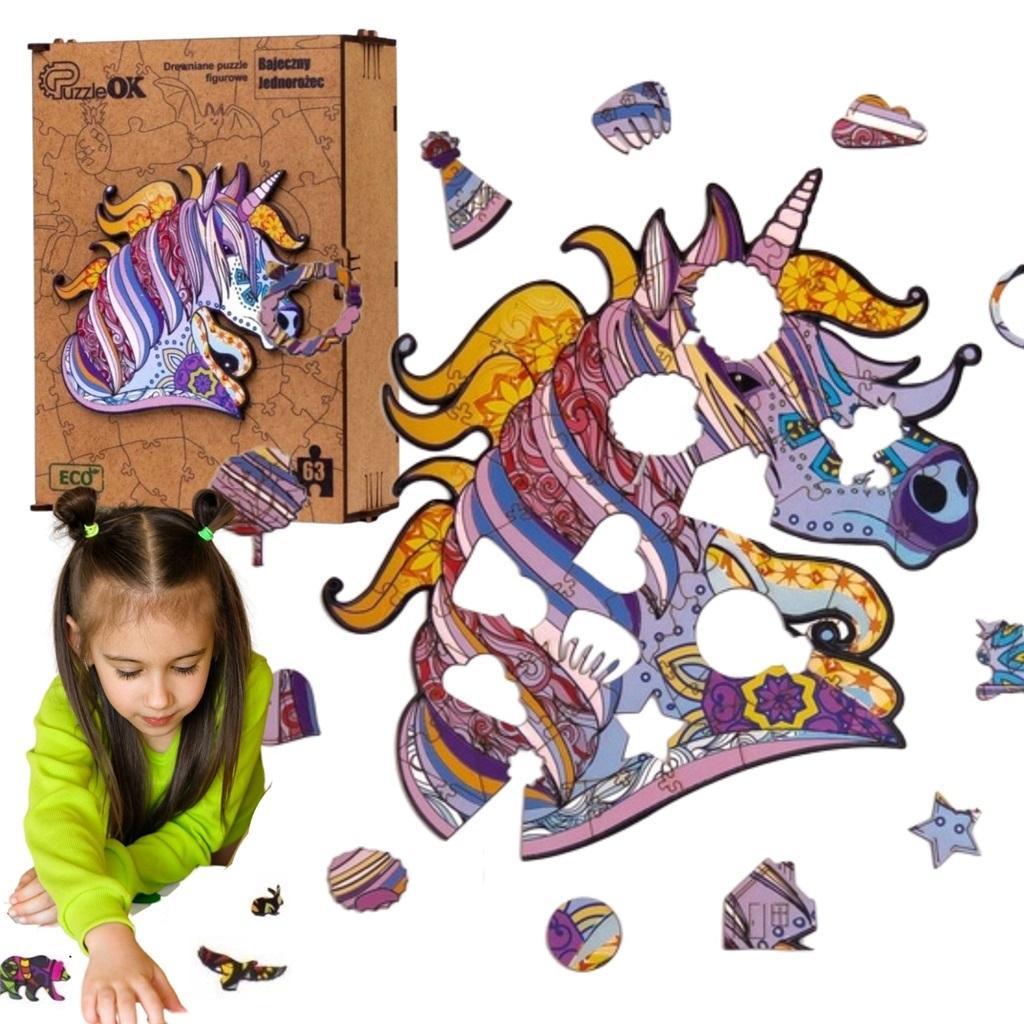 Puzzle drewniane eko 63 Bajeczny jednorożec A4 Gra
