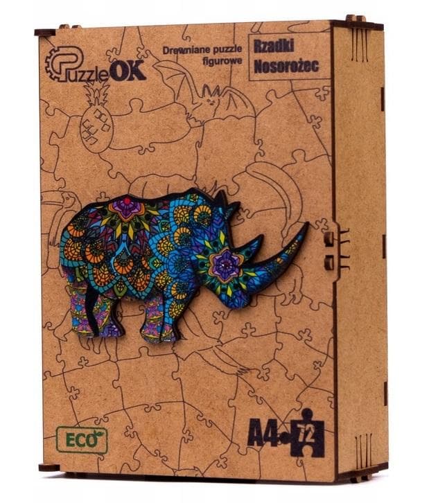 Puzzle drewniane eko 72 Rzadki nosorożec A4 Gra