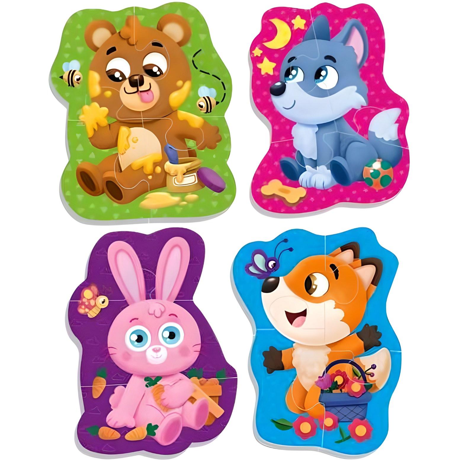 Puzzle Zwierzęta Leśne to zestaw składający się z 4 obrazków o różnej ilości elementów, stworzony z myślą o najmłodszych pasjonatach puzzli. Każdy obrazek przedstawia inne zwierzęta leśne i uczy dzieci ich rozpoznawania.