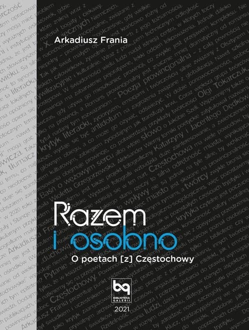 "Razem i osobno. O poetach (z) Częstochowy" jest trzecią częścią tryptyku eseistyczno-dokumentacyjnego autora o powojennym życiu literackim Częstochowy. Wcześniej Arkadiusz Frania opublikował tomy: Osobowości i osobliwości. Z życia literackiego współczesnej Częstochowy (2019) i Grupa Literacka „Profile”. Zjawisko, poeci, wiersze (2020). W najnowszej książce badacz poświęca uwagę poetom w większości przypadków już dziś zapomnianym (wielu z nich nie żyje), a stanowiącym w bliższej lub dalszej przeszłości o sile miejscowego środowiska. W odautorskim wstępie do edycji czytamy: „Kategoria «osobno» – to «osobnicy», poeci jako indywidualiści, samotnicy, outsiderzy, idący na przekór światu i/lub w głąb siebie. Kategoria «razem» – to twórcy zrzeszający się w ramach grup, skupieni wokół pism, pewnych idei, podejmujący wspólne tematy liryczne, także drukujący w ramach jednej serii wydawniczej”.