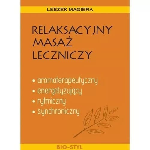 "Relaksacyjny masaż leczniczy" autorstwa cenionego w Polsce masażysty i instruktora masażu Leszka Magiery zawiera metodykę najbardziej popularnych masaży relaksacyjnych stosowanych na całym świecie w ośrodkach SPA, Wellness czy renomowanych gabinetach masażu. W książce Releksacyjny masaż leczniczy szczegółowo opisane zostały: masaż aromaterapeutyczny całego ciała, masaż energetyzujący przedniej strony ciała, masaż rytmiczny tylnej strony ciała, masaż synchroniczny całego ciała. Książka Relaksacyjny masaż leczniczy autorstwa Leszka Magiery skierowana jest do doświadczonych masażystów, stosujących masaże lecznicze, jak również do masażystów początkujących pragnących poszerzyć swoje horyzonty i być na bieżąco z nowościami rynkowymi. ZALETY KSIĄŻKI Relaksacyjny masaż leczniczy został napisany przez Leszka Magierę, praktyka i cenionego autora wielu podręczników o masażu W książce Relaksacyjny masaż leczniczy zostały opisane podstawy masażu leczniczego i relaksacyjnego Książka zawiera 340 zdjęć, które pozwalają odbiorcy na szybsze zapamiętanie szczegółów Książka Relaksacyjny masaż leczniczy Leszka Magiery skierowana do początkujących i doświadczonych masażystów chcących być na bieżąco z nowościami