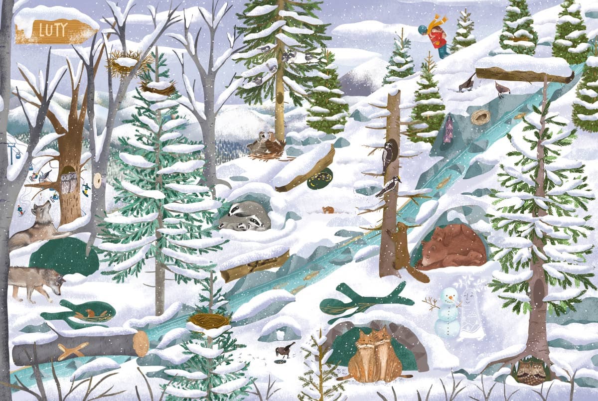 Na pogórzu wartko płynie potok, pluskają się w nim pstrągi, a nad łąką fruwają kolorowe ważki. Można się natknąć na sarny, czasami drogę przebiegnie lis albo zając. Zimą w zagrodzie mieszkają owieczki, które zeszły z hal. Na reglach stok jest już mocno nachylony, można się porządnie zmęczyć na spacerze. Ale widoki wynagrodzą wszelki trud! Rozrabiają tu borsuki i kuny, fruwają puchacze, jarząbki, sikorki i nietoperze. Z kolei najwyższe piętro gór, hale i turnie, zamieszkują świstaki, kozice, koziorożce oraz ogromne orły. Oprócz tego jest tu pełno małych gryzoni, chrząszczy i innych ciekawych żyjątek.