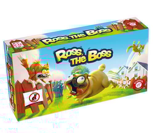 Zwinny, zasilany bateryjnie mops Ross broni swojego terytorium z całych sił. Jeśli zobaczy kota, rzuca się na nim w pościg. Jeśli uderzy w słupek ogrodzenia, kot odleci wysokim łukiem! Jednak po około 12 sekundach Ross traci oddech i zatrzymuje się, aby odzyskać siły i odeprzeć kolejny atak kotów. Jedynym bezpiecznym miejscem, które może chronić koty, są kosze na śmieci, ponieważ Ross nie może ich tam dosięgnąć. Każda osoba może wybrać kota na początku i ustawić go w dowolnym miejscu na płocie ogrodu za punktem startowym. Następnie rzucamy obiema kostkami. Kot porusza się zgodnie z sumą oczek na obu kościach. Jeśli wypadnie liczba i znaczek mopsa, kot przebiega najpierw odpowiednią liczbę kroków, a następnie aktywuje Rossa, który bierze się za przepędzanie kotów! Jeśli znaczek Rossa znajdzie się na obu kostkach, wtedy Ross od razu zabiera się za przepędzanie kotów! Jeśli jeden z kotów przechytrzy Rossa i przedostanie się przez płot do bezpiecznego domu po wykonaniu jednego okrążenia, gra się kończy. Pies Ross zasilany jest trzema bateriami 1,5 V typu AAA (baterie nie są załączone).