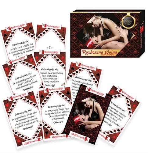Czy uważasz, że oryginalny wstęp do miłosnych igraszek trudno jest wymyślić? Czy często początek jest tak naprawdę kopią Waszego ostatniego razu? Rozkoszna Wojna jest genialnym w swej prostocie urozmaiceniem sypialnianych doznań! Ta gra to doskonały sposób, by zwykły wieczór zamienić w ekscytującą wojnę zmysłów pełną miłosnych "działań zaczepnych" skoncentrowanych na ciele ukochanej osoby oraz licznych eksplozji rozkoszy! Rozgrywka będzie wojną dwóch ciał, z których każde okaże się zwycięzcą. Gra sprawia, że zarówno mężczyźni jak i kobiety chętnie rozpoczną "niewinną" grę i pozwolą wprowadzić się w erotyczny nastrój.