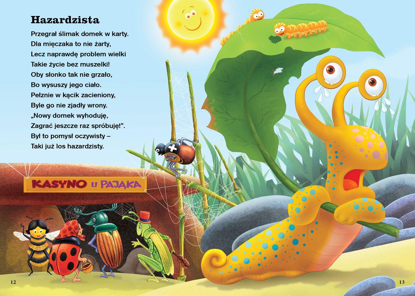 Seria 'Rymowanki małej Anki' obraca się wokół codziennych tematów, ukazując je z różnych perspektyw w sposób zabawny i przewrotny. Humorystyczne podejście do wątków dnia powszedniego bohaterów oraz życiowa puenta na koniec każdej rymowanki, skłania do refleksji nad postępowaniem postaci. Pierwsza część serii pt.: 'Lokatorzy' przedstawia wydarzenia dotyczące mieszkania i jego użytkowników. Poznajemy: ślimaka- hazardzistę, który ma problem z utraconą muszelką, astronautę w rakiecie z niechcianymi lokatorami czy też kurę - plotkarę, która zasłużyła na karę.Szczegółowe informacje na temat książki Rymowanki małej Anki Lokatorzy