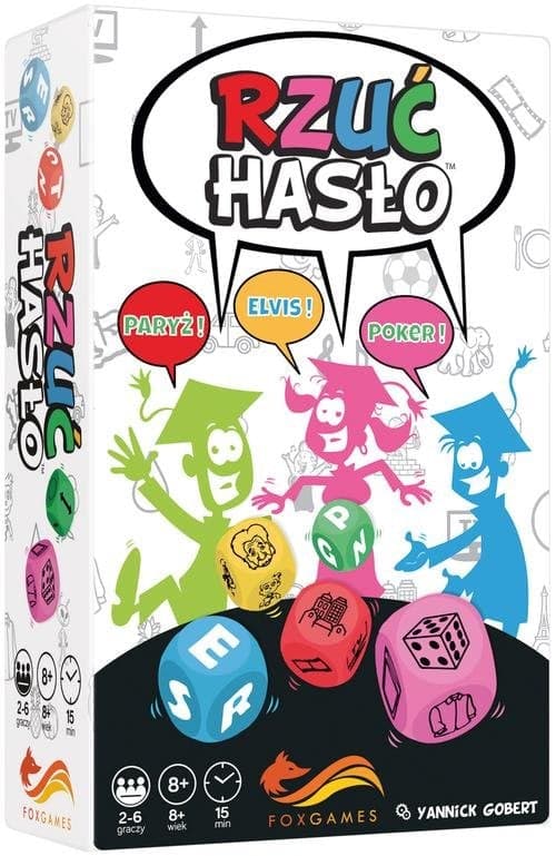 Kostki liter i kategorii lądują na stole! Głowy parują, a emocje sięgają zenitu. Kto pierwszy poda hasło, które zaczyna się na daną literę i pasuje do kategorii, zdobywa punkt. Mała kościana gra, w której gracze mogą nie tylko przetestować swoją wiedzę, ale też sprawdzić swoją spostrzegawczość, refleks i zdolność kojarzenia. Rzuć hasło zawiera różnokolorowe kości z literami i tematami. Gra polega na znajdowaniu skojarzeń do tematów, a słowo musi rozpoczynać się na konkretną literę. Gracze muszą jednak uważać, aby nie połączyć ze sobą dwóch kości w tym samym kolorze. Ta błyskawiczna i wesoła gra dobrze sprawdzi się zarówno w rodzinnym gronie, jak i na imprezie czy spotkaniu towarzyskim. „Gimnastyka mózgu” gwarantowana! Imprezowa gra kostkowa, którą można zmieścić do kieszeni Świetna zabawa, łatwe zasady Idealna na spotkania z rodziną i ze znajomymi