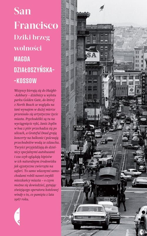 Zbudowane w połowie XIX wieku dzięki gorączce złota, San Francisco od początku przyciągało ludzi poszukujących wolności, bogactwa, możliwości zaczęcia od nowa. To miasto marzeń, kontrkultury, ruchu LGBT, muzyki, sztuki i wina. Mekka artystów i niebieskich ptaków. Dom Janis Joplin i Grateful Dead. Intelektualne zaplecze Doliny Krzemowej, centrum start-upów i najnowszych technologii. Magda Działoszyńska-Kossow zabiera czytelników w podróż w czasie i przestrzeni: pisze o barwnej historii i bogatym pejzażu kulturowym, który towarzyszył powstaniu i rozwojowi miasta przez ponad sto pięćdziesiąt lat. Mówi o artystach, wizjonerach i milionerach, ale też o epidemii HIV/AIDS, narkomanii i tysiącach bezdomnych. W San Francisco jak w soczewce skupiają się problemy współczesnej Ameryki, kraju ostrych kontrastów i pogłębiających się różnic ekonomicznych. Tutaj właśnie amerykański sen często kończy się gwałtownym przebudzeniem i okazuje się, jak wysoką trzeba za niego zapłacić cenę. „Witajcie w San Francisco, założonym na rubieżach świata poligonie doświadczalnym ludzkich możliwości. Gorączka złota i Dolina Krzemowa, Haight-Ashbury i Golden Gate, Timothy Leary i Mark Zuckerberg. „Kaprysy fortuny, jakich można tu doświadczyć, sprzyjają różnym rzeczom, ale nie zdrowiu psychicznemu” – pisze autorka o dziewiętnastowiecznych poszukiwaczach sławy i fortuny. Podobno niewiele się w tej mierze zmieniło. Czytajcie!” Ewa Winnicka