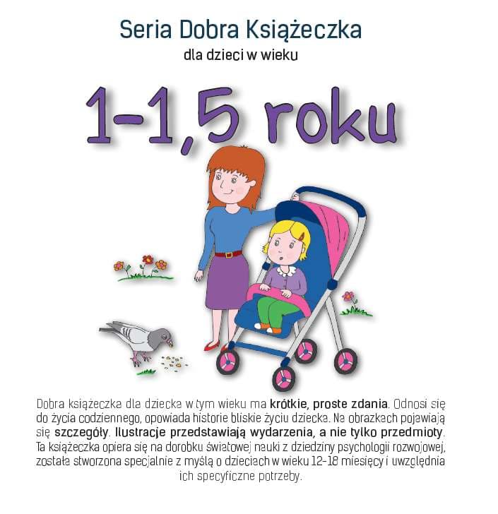 Seria Dobra Książeczka jest napisana i narysowana zgodnie z najnowszym stanem wiedzy psychologii rozwojowej. Na okładce posiada jasny, konkretny, rzeczowy i ciekawy opis etapu rozwoju dziecka.