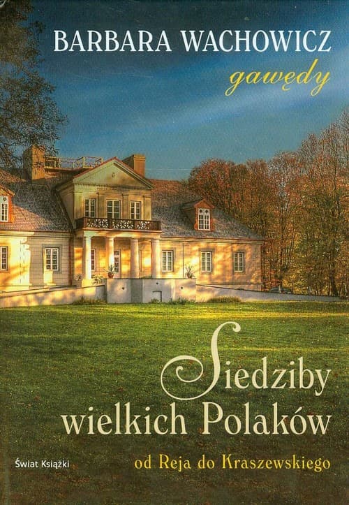 Dzięki książce Siedziby wielkich Polaków będziemy mieli wyjątkową okazję odwiedzić miejsca zamieszkania sławnych Polaków, poznać ich życie i losy ich domostw – barwne, piękne, dramatyczne. Odwiedzimy Nagłowice Mikołaja Reja - ojca literatury polskiej, Czarnolas mistrza polskiej pieśni – Jana Kochanowskiego, Mereczowszczyznę na Polesiu, gdzie przyszedł na świat zwycięzca spod Racławic – Tadeusz Kościuszko, „kraj lat dziecinnych” Adama Mickiewicza – Zaosie, Nowogródek, jezioro Świteź, Ziemię Wielkopolską – „Chrzestną Matkę Pana Tadeusza”, Opinogórę – romantyczną siedzibę Krasińskich, miejscowość Suchą na Podlasiu, gdzie urodził się wielki filozof europejskiej sławy – August Cieszkowski, Żelazową Wolę – miejsce narodzin Chopina, Korczew na Podlasiu, o którym marzył Norwid, Lubelski dworek Wincentego Pola – autora „Pieśni o ziemi naszej” i Romanów, gdzie „zostało serce” Józefa Ignacego Kraszewskiego. Następne Podróże – które ukażą się jeszcze w tym roku – zawiodą nas m.in. do Woli Okrzejskiej i Oblęgorka, do Harendy, Bronowic i Stawiska. Bogato ilustrowana książka ukazuje urodę architektury dworów i pejzaży polskich, a także unikatową ikonografię z epoki. Barbara Wachowicz - autorka książek, wystaw, spektakli, programów telewizyjnych i radiowych poświęconych Wielkim Polakom. Obdarzona tytułem „Pisarki losu polskiego”, laureatka wielu nagród, a wśród nich – Polskiego Nobla – TOTUS, „Orderu Uśmiechu” przyznanego przez młodzież z motywacją: „To dzięki niej zstępują z piedestału bohaterowie narodowi i najwięksi twórcy literatury, by stać się nam bliskimi”. Wybrana przez American Biographical Institute do grona Great Women of the 21th Century.