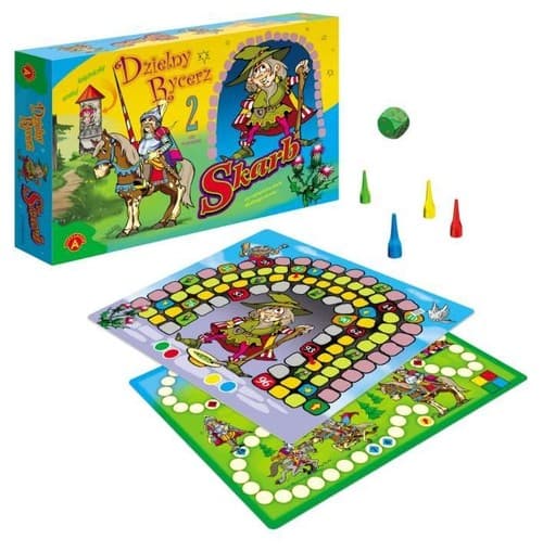 "Dzielny rycerz" i "Skarb" to dwie gry planszowe dla młodszych dzieci. W pierwszej grze jej uczestnicy wcielają się w postać dzielnego rycerza, który spieszy na ratunek zamkniętej w wieży księżniczce. Po drodze spotyka go wiele niebezpiecznych niespodzianek. Zwycięzcą w grze zostaje ten, kto mino przeszkód jako pierwszy uwolni księżniczkę. W grze "Skarb" gracze starają się zdobyć skarb, którego pilnuje złośliwy skrzat. Droga do skarbu nie jest łatwa i bezpieczna. Kto pokona trudności i pierwszy trafi do skarbu, zostaje zwycięzcą. Zawartość pudełka: plansza, 4 pionki, kostka do gry, instrukcja. 2-4 graczy Wiek: 5+
